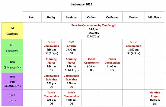 During the week there are celebrations of Holy Communion on Tuesdays at 10am in Church House, Hutton Rudby, and on Thursdays at 9.15am in Swainby Church Hall.